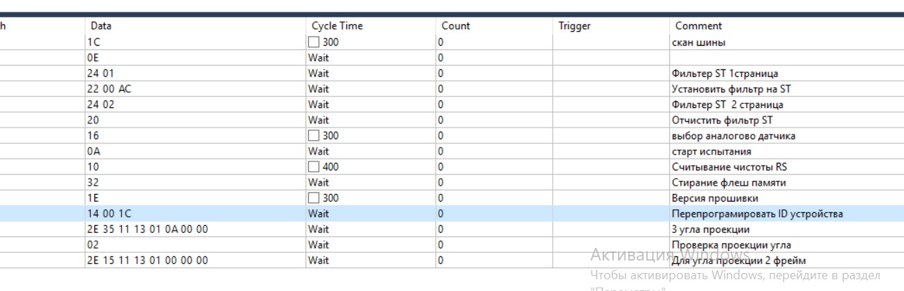 3. В появившемся окне в строке «Идентификатор(DEC)« требуется внести адрес ST (например: 100), а в «Данные(HEX)« внести команду сброса ST фильтра (20) и подтвердить действие «ОК».