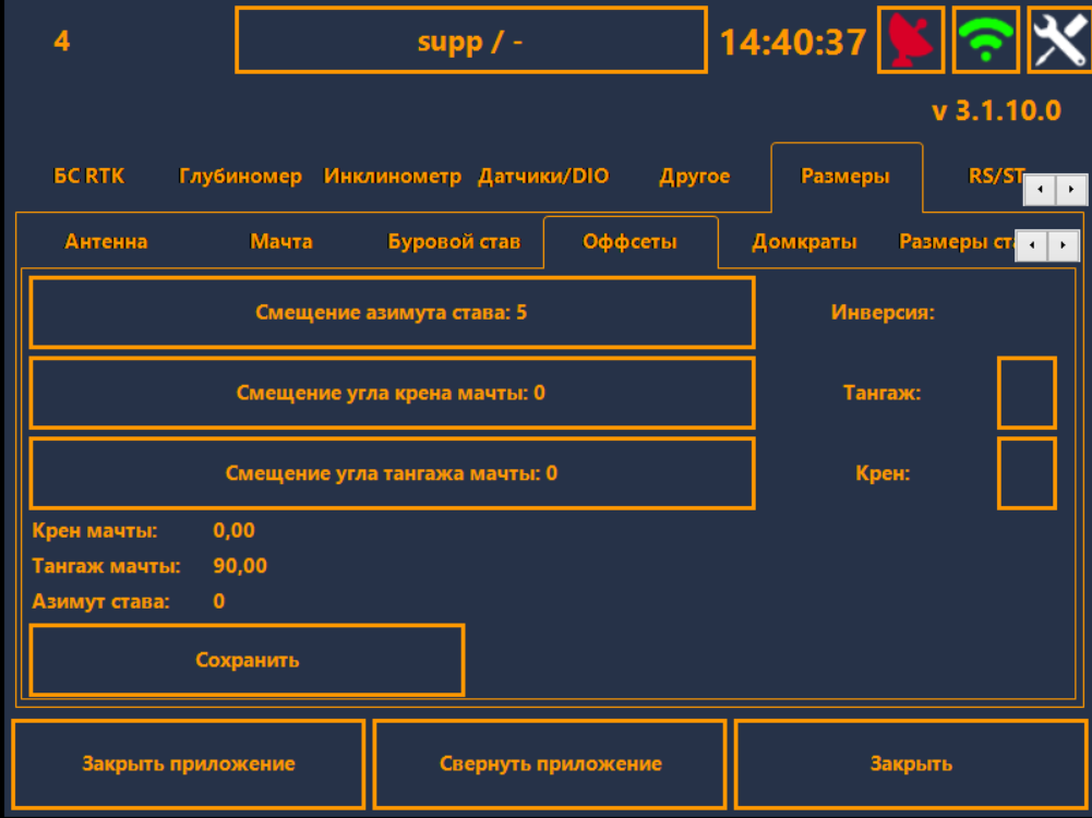 В административном меню перейдите: «Размеры» → «Оффсеты (Смещения)» → «Смещение азимута станка»
