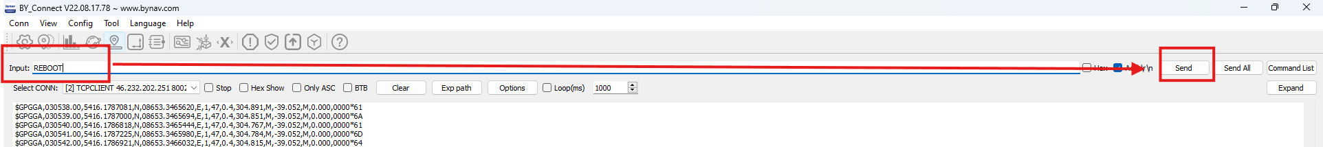 Далее, можно отправлять команды, например ''REBOOT''