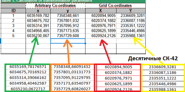 5)Переводим из WGS84 в SK42 и получаем координаты по Х и У минимум для 4х точек. В дальнейшем это необходимо для проверки.