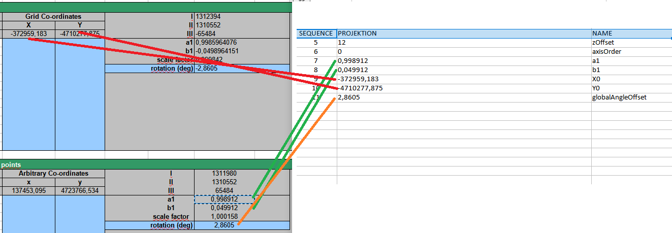 SEQUENCE 9 "X0" - Helmert.Table 2 Grid coordinats X