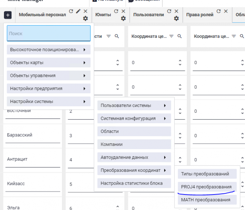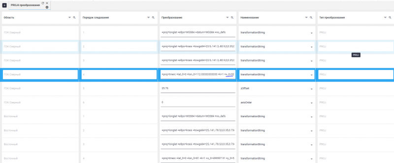Настройка PROJ4 преобразований через WEB-интерфейс